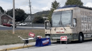 At a bus tour stop that “did not include an appearance by Earle-Sears herself,” WHSV reported that “union workers with Service Employees International Union of Virginia and other community members stood alongside the campaign event attendees … to protest against what they called ‘devastating’ Medicaid cuts.”